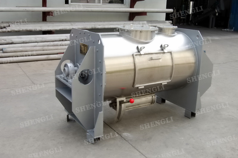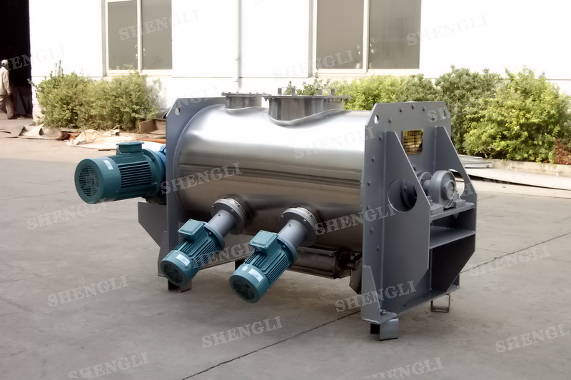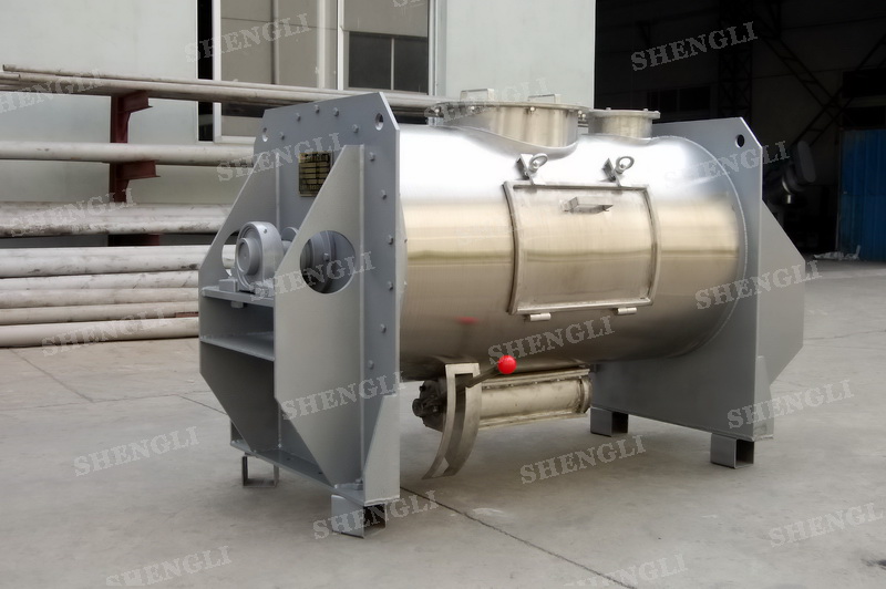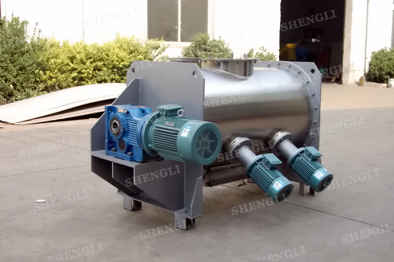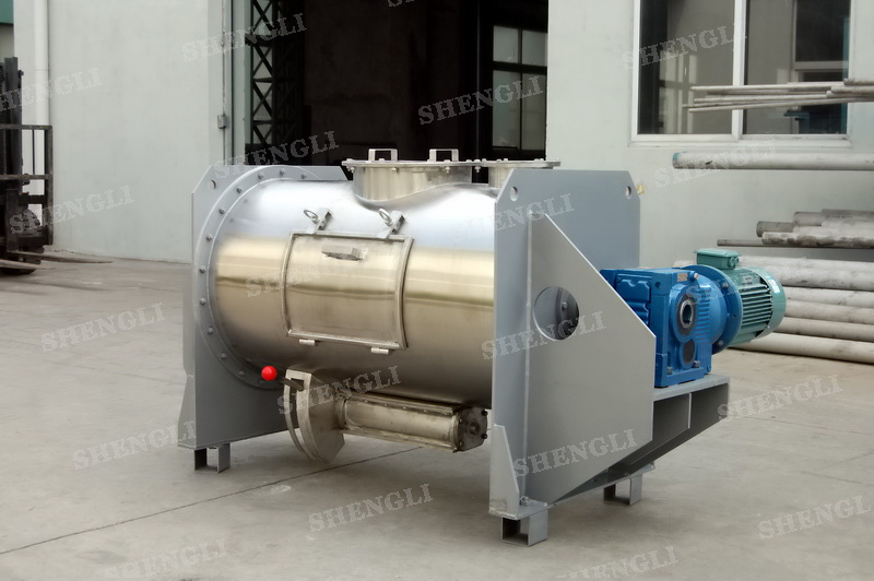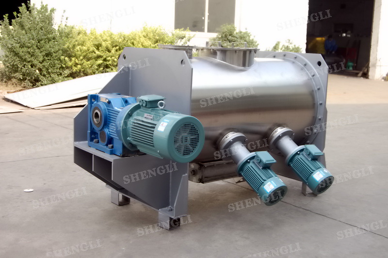工作原理:犁式混合機采用臥式圓柱筒體,內設平行主軸,主軸上安裝若干犁式刀頭,通過較快的旋轉速度,分割、重合物料,實現快速攪拌的功能,常結合1500-3000轉高速剪切飛刀相互作用。