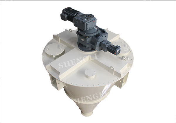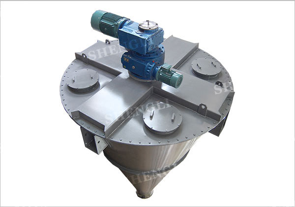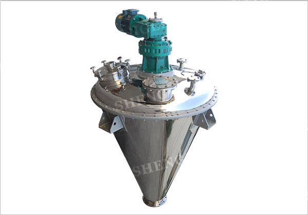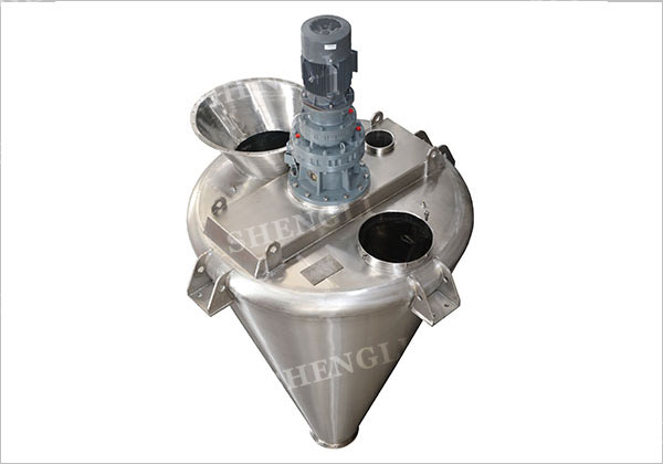混合機根據物料性質、啟動方式、以及工藝要求配置不同功率、不同能力的驅動裝置。 雙螺旋錐形混合機裝載專用的雙輸出減速機組合箱,采用擺線針輪、齒輪、蝸輪蝸桿形式組合定制而成。